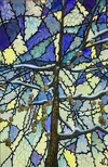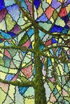Mosaic: SpringAn exploration of color and negative space. My work gravitates to the real and surreal. This departure mixes elements of the abstract to the process. The light palette contrasts with the dark branches to evoke images of stained glass and gossamer wings.
